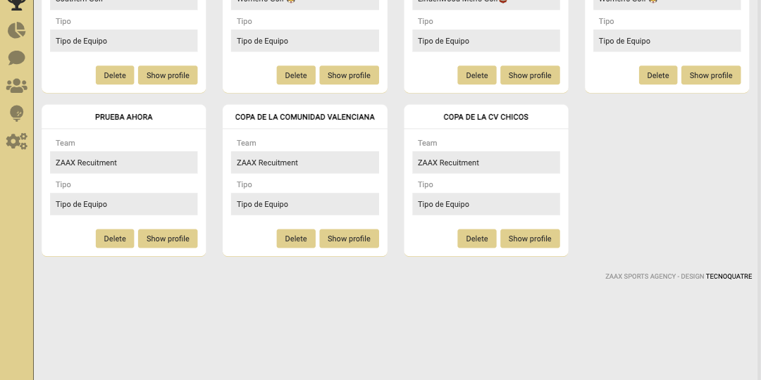 El módulo de Torneos permite a los administrador y/o entrenadores gestionar toda la información de los torneos.